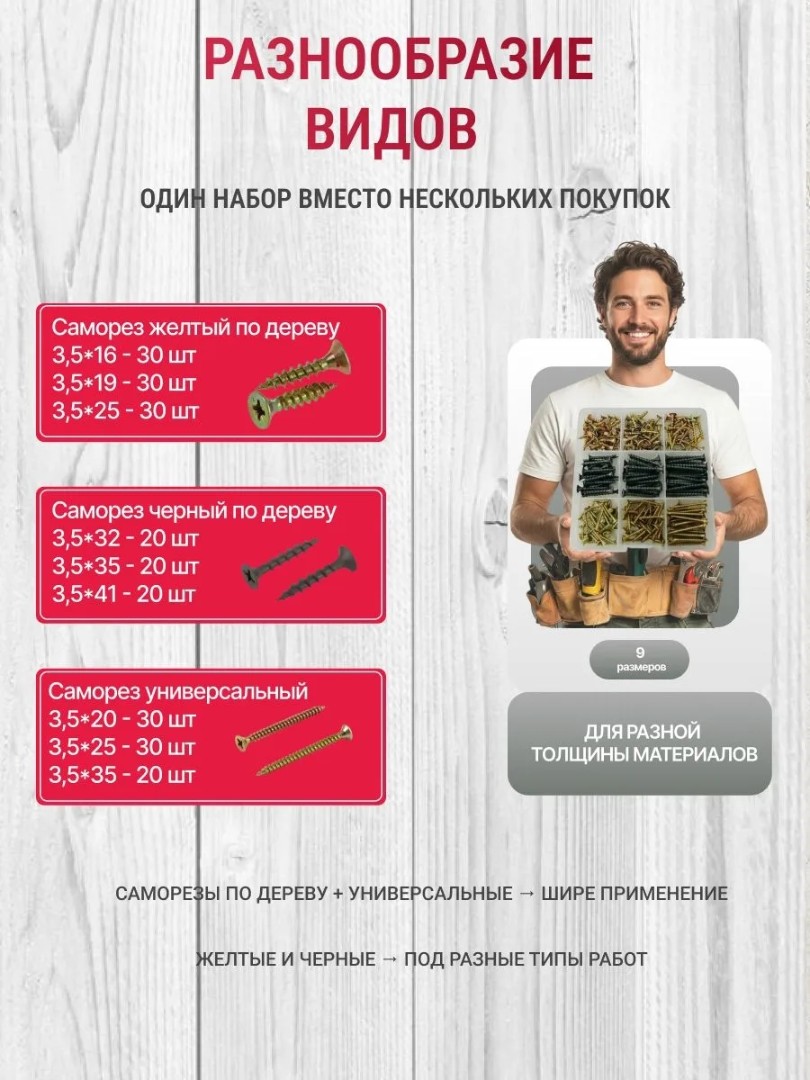 Набор крепежа " Домашний №3 " саморезы+дюбеля - 275 шт